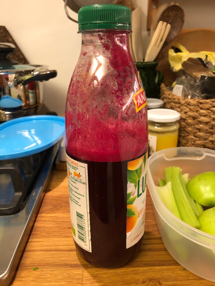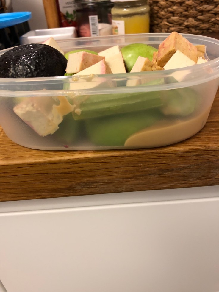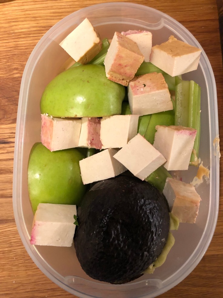 I think for vegans one of the most difficult tasks is finding delicious food while traveling. Top that with the need to be gluten free and organic! An absolute NO. Does not exist. So I have learned to prep my meals when I travel. Most glut.free foods are full of sugar in cafes and vegan options mainly include wheat bread or other gluten. Sad really. Anyway, so here is what I packed for tomorrow when I fly home again: pressed juice of cilantro, ginger, carrots, beetroot and half of an apple. I added some lemon juice in the end. I will sip on this on my way to the airport. It will be way too early to eat. For my brunch ( not much of a breakfast person) I packed celery, almond butter, an avocado, some tofu and the rest of the apple. I love to munch on crunchy things 🙂 For desert, I packed some chickpea and coconut flower muffins I made a few days ago. They contain raspberries and blueberries but absolutely no sugar. All ingredients are organic, gluten and sugar free. Sure it takes time to prepare everything, but it is worth it. I take some green tea with me and I am set for a relaxing journey.