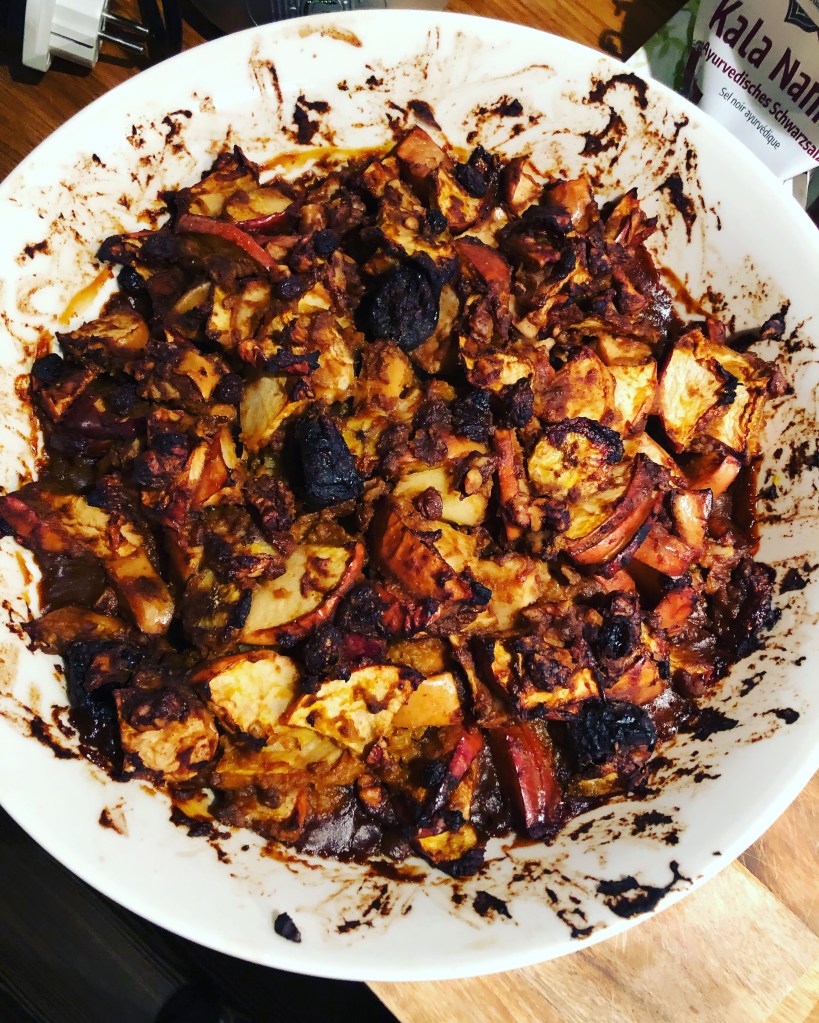 Here is the thing, with a little effort it can be. I just mixed apples 🍎 1 banana 🍌 some raisins and a few plums with pumpkin 🎃 puree, cinnamon, gingerbread spice and some cloves, approx 12 mixed nuts chopped and a nice splash of dark rum 😃 Baked it for about an hour in 180 degrees in a fan oven. Wow, such flavorful dish! I truly recommend this one 🤗 Have a flavorful holiday!!